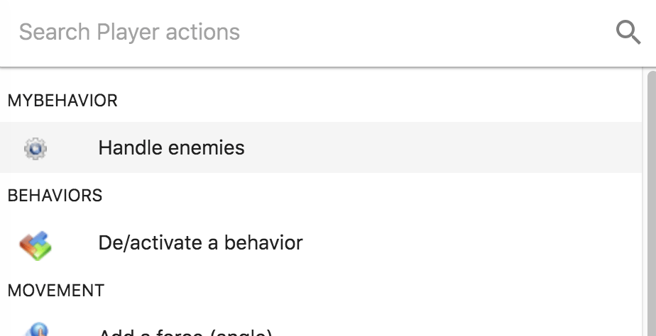 When your game starts to grow, or even at the beginning when starting the creation of your game, it's a good idea to organize as much as possible of the logic of your game in custom behaviors. This helps to reduce the number of events in the scene event sheet(s) and make your game easier to reason about.